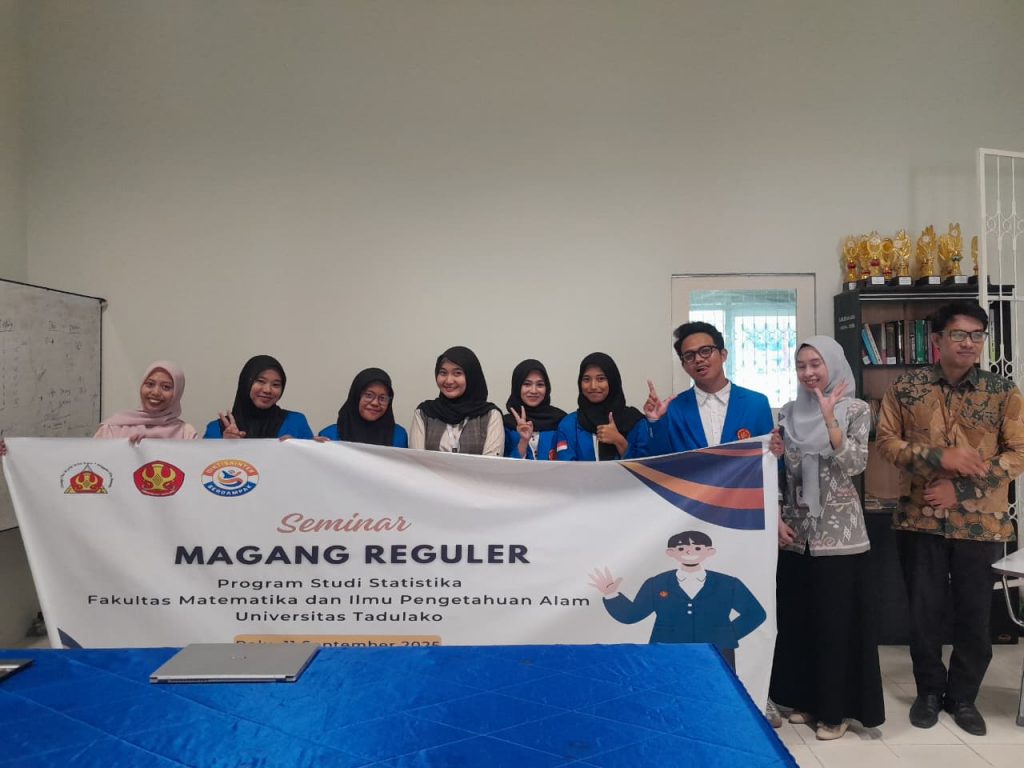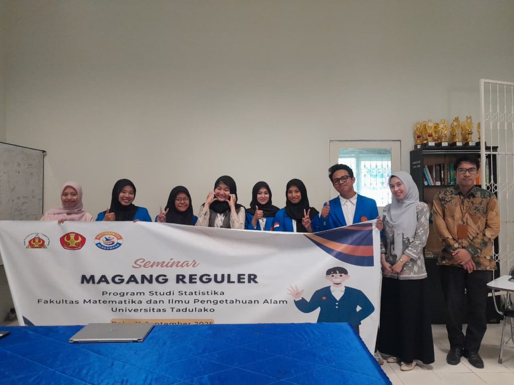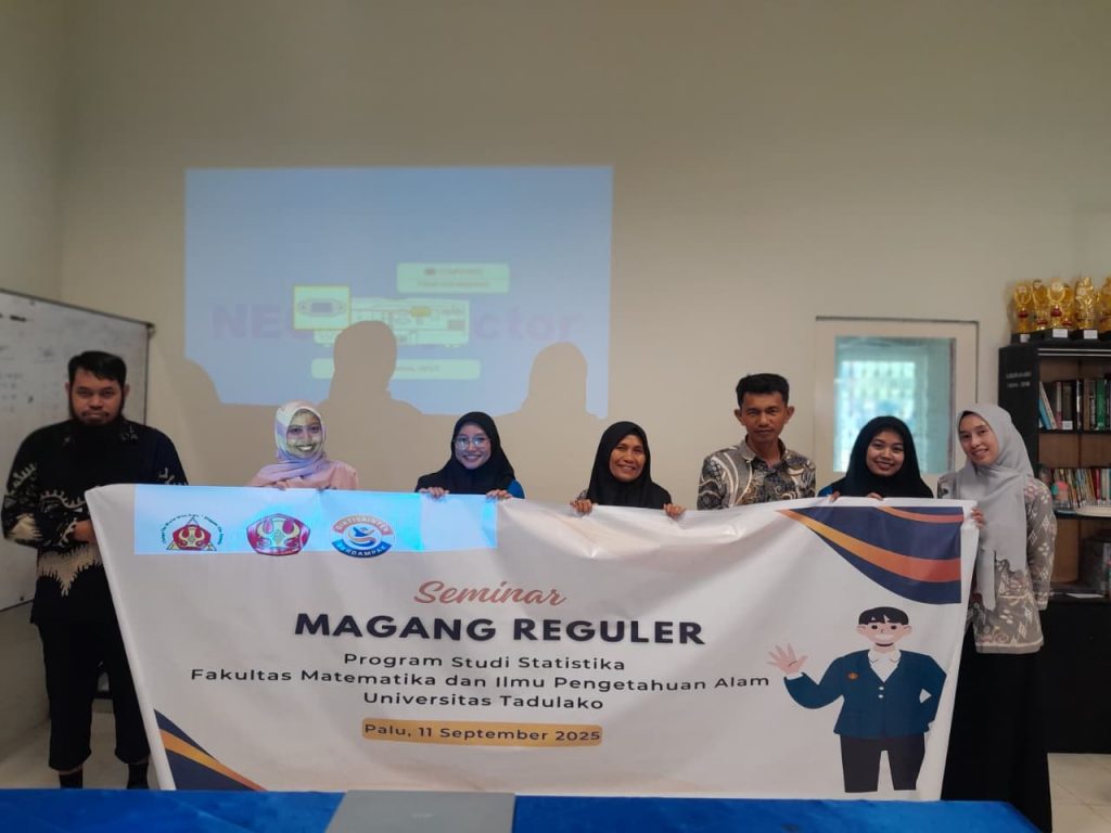 Palu, 11 September 2025 — Program Studi Statistika, Fakultas Matematika dan Ilmu Pengetahuan Alam (FMIPA), Universitas Tadulako, melaksanakan Seminar Magang Reguler sebagai bagian dari rangkaian kegiatan akademik mahasiswa.
