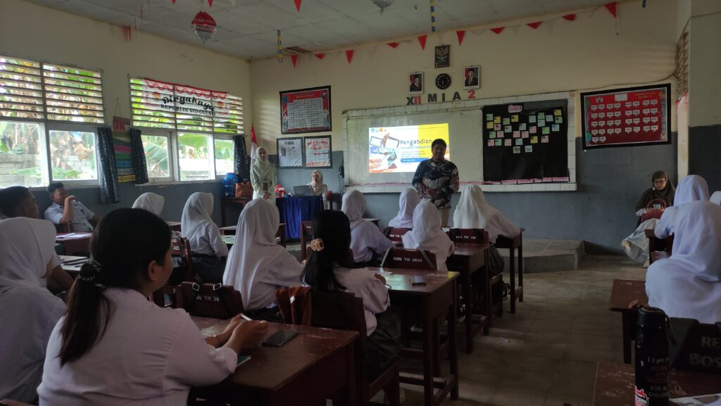Tim pengabdian yang dipimpin Nur’eni, S.Si., M.Si menghadirkan materi aplikatif, diskusi interaktif, serta contoh nyata penggunaan data dalam kehidupan sehari-hari. Siswa diajak memahami bagaimana data digunakan dalam pemilihan jurusan, riset sederhana, hingga berbagai profesi di era digital.